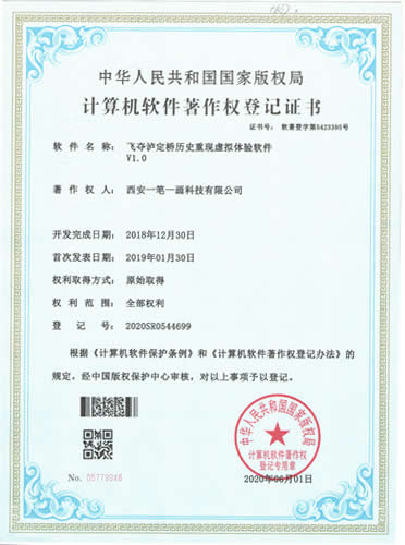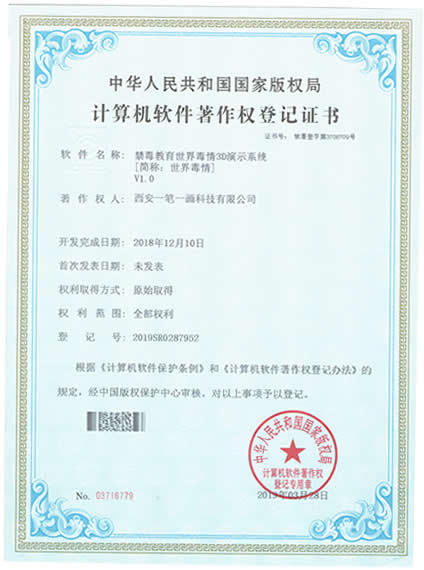 西安一筆一畫科技有限公司擁有《3C管理體系認證》|《3A信用等級》|《展館雙甲資質》《招投標證件》|《展覽業10大影響力品牌》|《環(huán)藝雙甲資質》|《禁毒教育拒毒心理測試系統軟著》|《飛奪瀘定橋歷史重現虛擬體驗軟件軟著》|《禁毒教育世界毒情3D演示系統軟著》等等,是您可以信賴的展廳教育基地設計施工企業!